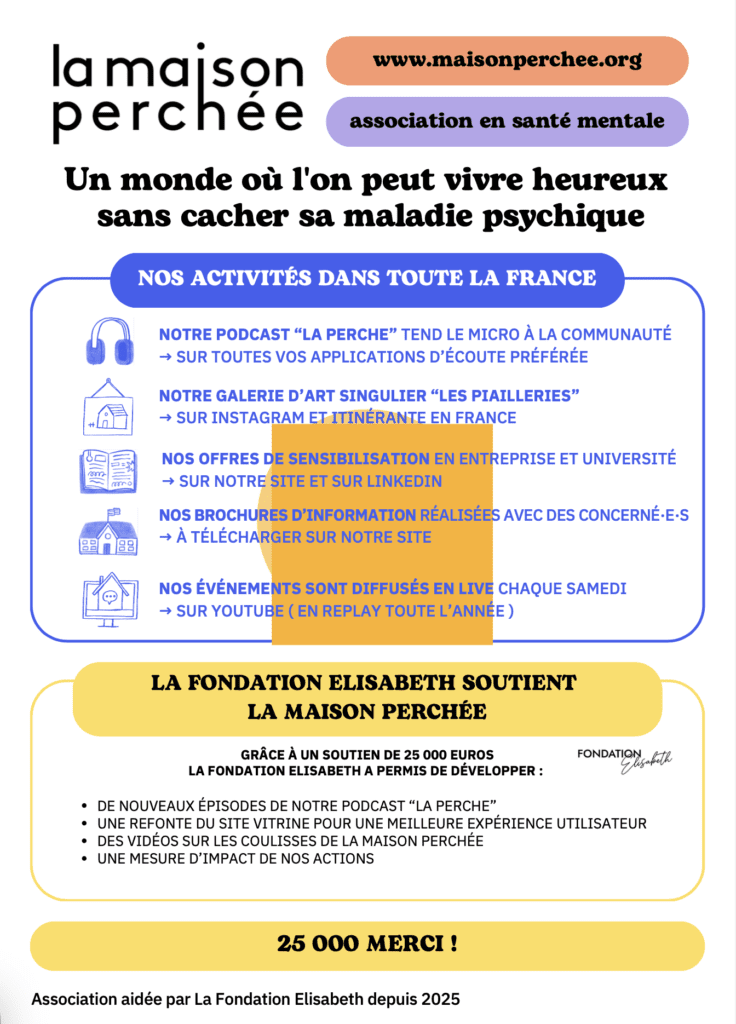 Présentation de la Maison Perchée, association soutenue par la Fondation Élisabeth depuis 2025.